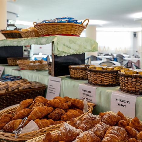 Ogni mattina ti aspetta un buffet ricco e vario, pensato per soddisfare ogni gusto. Dolce e salato, prodotti freschi da forno, frutta di stagione, yogurt, cereali, succhi e bevande calde: tutto quello che serve per affrontare la giornata con la giusta energia.