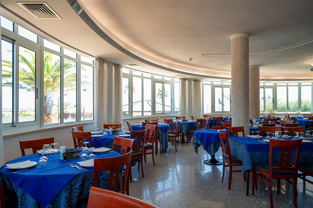 La cucina dell'Hotel Maxim's unisce tradizione italiana e sapori abruzzesi in piatti preparati ogni giorno con ingredienti freschi e genuini. La sala ristorante, luminosa con ampie vetrate che si affacciano sul giardino e sulla spiaggia, offre un'atmosfera accogliente e familiare. Dal buffet della colazione ai menù di pranzo e cena, il nostro chef e lo staff ti accompagnano in un viaggio tra i sapori autentici del territorio.